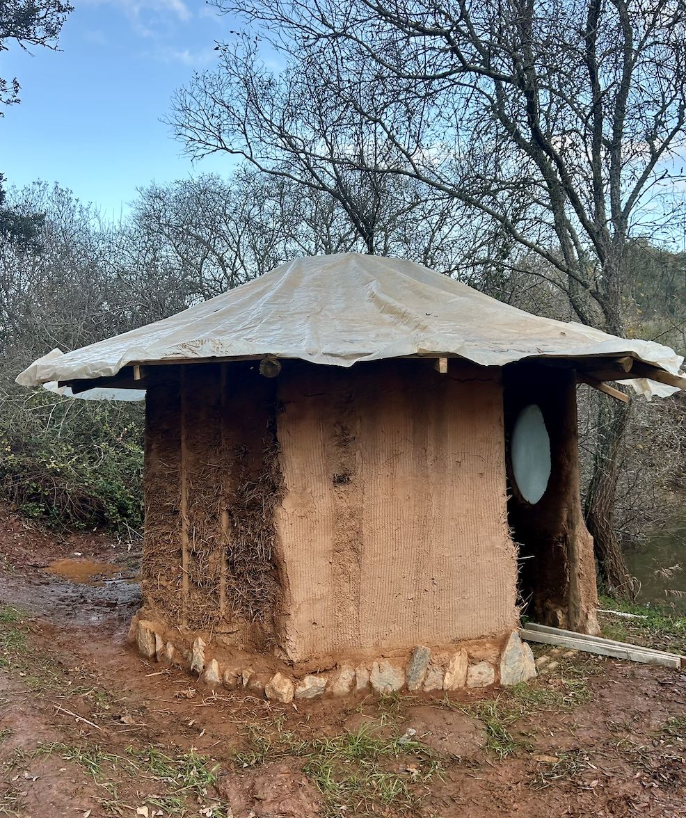 Lola, die voorheen beeldhouwer en leraar was, volgde ooit een permacultuur-cursus waarvoor ze een earth house bezocht en daar sloeg de vonk voor natural building over. “Ik wist al hoe je kunst kon beeldhouwen, maar ineens zag ik voor me hoe ik letterlijk een huis kon bouwen van klei. Daarna heb ik bijna tien jaar in Thailand gewoond en aan veel eco-dorpen meegebouwd.”