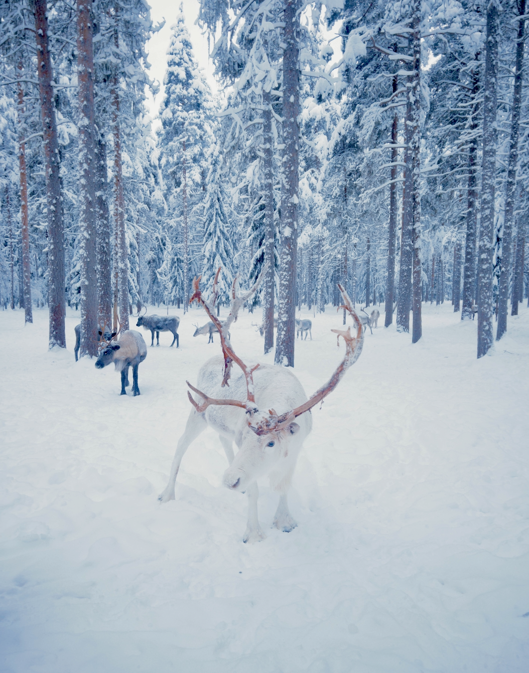 In Malå Wilderness Camp ontmoeten we Sami Börje en zijn kudde rendieren. We maken kennis met Oscar, een prachtig wit rendier dat net zijn één van zijn twee geweien met bloed en al heeft afgeworpen, dat over een tijdje weer aangroeit. Voorzichtig maar nieuwsgierig eet hij een speciaal soort mos, lichen, uit mijn hand.